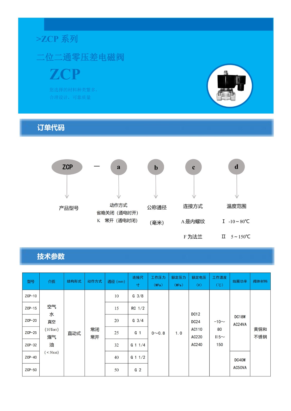 ZCP二位二通零壓差電磁閥